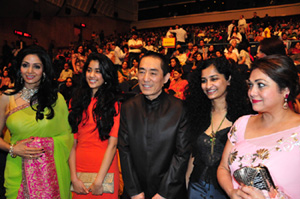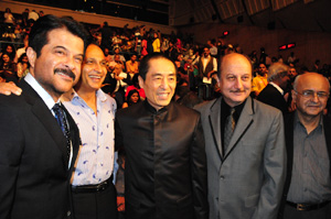 中國導演張藝謀(中)與印度男演員等合影。記者 趙旭/攝 |