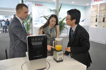 另外,在海爾展區還有眾多“好創意”的產品正在受到來自世界各地的關注。比如海爾水晶系列滾筒洗衣機,在靜音、速洗與潔凈上都取得了突破,很受國外客商的青睞;無霜多門冰箱,也以其大容量、超節能、保鮮度高等優勢收獲了不少來自歐洲客商的認可。無疑,這些能夠滿足消費者需求的“好創意”的產品,將為全球用戶提供更具創意與靈感的新生活。