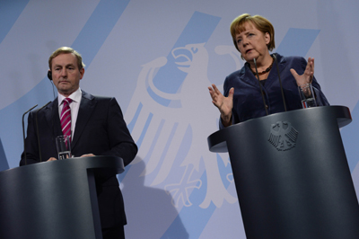 德國總理默克爾(右)11月1日在與愛爾蘭總理肯尼會談時稱,將盡全力促成歐盟預算案達成。