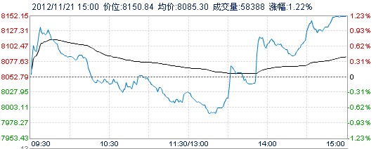 21日兩市開盤漲停不一,券商、保險、自貿區概念股受益利好全天強勢,成為護盤主力,此前火熱的美麗中國、農林牧漁等板塊紛紛回調,釀酒、環保板塊持續下行,臨近午盤,滬指跌破2000點,隨后小幅攀升勉強守住2000點,午后兩市繼續下行,一度下探至1995.17點,臨近14點,地產、銀行發力護盤,煤炭、有色等各類題材股紛紛做多,大盤直線拉升強勢翻紅,14:30分左右,股指再度拉升突破五日均線,在股指期貨尾盤暴漲的帶動下,兩市再度沖高,截至收盤,滬指報2030.32點,漲幅1.07%,成交396.6億元;深成指報8150.84點,漲幅1.22%,成交402.3億元,成交量較前一交易日同期有所放大。