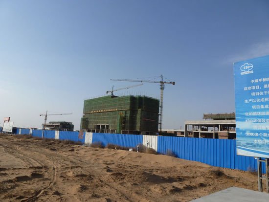 根據工地旁四面巨大的廣告牌,記者得知在建工程叫作“煤制甲醇醋酸系列深加工及綜合利用項目”,是中煤集團與陜西省政府簽訂的《戰略合作框架協議》的重要體現,也是陜西省規劃的“十二五”重點工程。