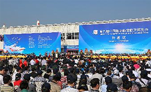 圖為第九屆中國航空航天博覽會開幕式現場。本屆博覽會有114架飛行器集結。 |