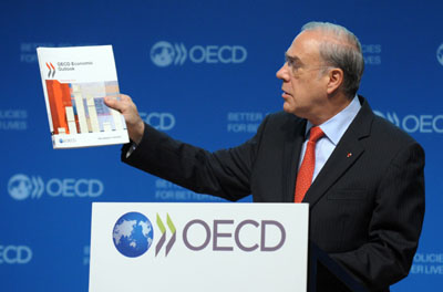 總部位于巴黎的經濟合作與發展組織(簡稱經合組織)27日發布新版“經濟展望報告”。經合組織秘書長安赫爾·古里亞當日在發布會上表示,全球經濟明年將出現顯著下滑,而歐債危機“當前仍是世界經濟最大威脅”。古里亞指出,盡管各國已采取應對措施,但一些國家的債務永久化問題有可能引發連鎖事件,將全球經濟拖入衰退之中。經合組織在報告中下調了全球經濟增長預期,預計今年全球經濟僅增長2.9%,明年增幅為3.4%。此外,經合組織還預期,美國今年經濟增速由此前預計的2.6%降至2.2%,2013年增速將降至2.0%。