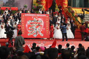 魯南制藥集團以"家"為主題的集體婚禮場景 |