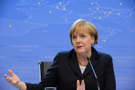 德國總理默克爾2日接受德國《星期日圖片報》采訪時說,如果希臘實行經濟結構改革進展順利,在將來能實現其財政收支平衡并確保不再新增債務,德國不排除考慮及評估在目前希臘救助計劃于2014年初見成效后減記希臘所欠公共部門債務的可能性。 圖為默克爾。