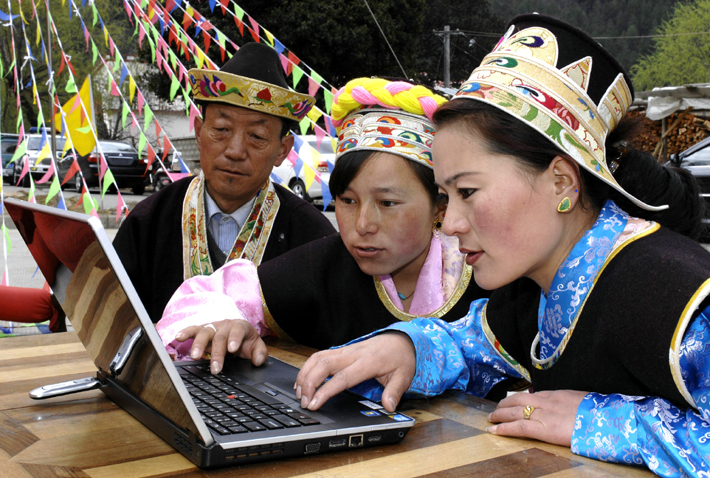 西藏林芝縣唐地村村民通過互聯網瀏覽新聞。 新華社 李偉明/攝 |