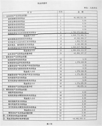 《現金流量表》一個科目中的資金額,可能是一個年度內同性質的資金反復計入的數值。比如相關賬戶中有47.5元現金,假設在一年內不斷投資(支付)和兌付(收到)各1億次,也會被計入47.5億的數值。如果以現報表中“支付的其他”現金減去47.5億,該會計科目中另有90617722.28元。兒慈會發言人姜瑩對本報記者說,這些資金一部分用于其他短期理財,一部分屬于業務周轉或退還款項。