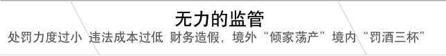 境內"罰酒三杯" 上海交通大學高級金融學院副院長朱寧認為,加強監管不能僅僅停留在道義上的譴責,關鍵是要追究責任!霸诿绹,安然因造假一日之內破產倒閉;在香港,保薦機構兆豐資本因未盡責被撤銷保薦牌照,并被罰款4200萬港元;而在A股市場,綠大地造假,各大責任主體逃之夭夭,股票依舊堂而皇之地掛牌交易! |