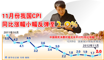 從2011年8月開始的物價漲幅回落,很可能已于今年10月觸底,11月CPI重上2%,標志著新一輪上漲階段的到來。國務院國資委研究中心研究員胡遲表示,盡管11月CPI的同比增幅只比10月擴大了0.3個百分點,但這標志著本輪物價的拐點已經出現,未來我國物價水平將進入新一輪上升周期。