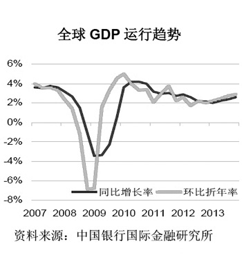 全球年度GDP增長率從2009年的-0.6%衰退大幅回升到2010年5.3%,但是2011年下滑到3.9%。IMF預測2012年全球經濟增長率將進一步回落到3.5%上下,2013年略有好轉。與前兩年強勁復蘇相比,明年整體疲弱態勢難以改變。