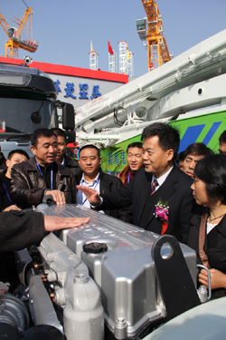 華菱星馬董事長劉漢如自信地為嘉賓介紹華菱自產重型發動機 |
