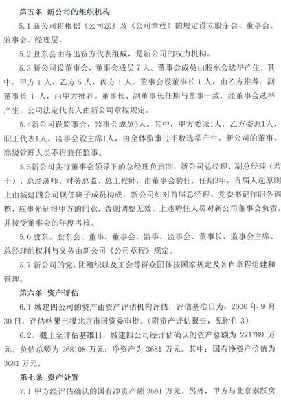 按照記者獲取的《北京城建四建設工程有限責任公司資產重組協議書》顯示,新公司的注冊資本和股權結構為北京城建集團以國有資產出資6000萬人民幣,占股20%;瑞豐恒基以貨幣出資2.25億元,占股75%;于天恩等以貨幣出資1500萬元,占股5%。