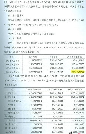 根據重組后的審計結果,城建四改制時所謂的凈資產根本就不存在,取而代之的是高達6.9億元的虧損。