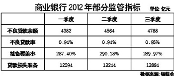 “截至2012年三季度末,銀行業總資產達128萬億元;商業銀行不良貸款率為0.95%,撥備覆蓋率達到290.0%,撥備率達到2.76%;資本充足率為13.03%,其中核心資本充足率為10.58%。2012年前三季度,商業銀行累計實現凈利潤9810億元,同比增長20%!敝苣奖寡,“不過,我們也清醒地認識到,中國銀行業穩健運行面臨一系列挑戰。從短期看,外部經濟形勢不確定性仍然存在,國際經濟形勢不容樂觀,商業銀行存在不良貸款反彈上升的壓力等。從中長期看,我國經濟結構調整和經濟增長方式轉變、利率、匯率等基礎性金融變量的市場化改革都對商業銀行轉變發展方式提出了新要求;商業銀行業務和產品的同質化現象仍較為突出,服務實體經濟的能力還有待增強!