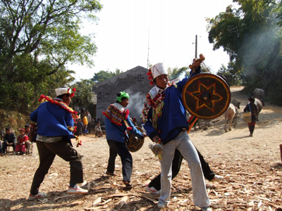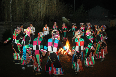 節日里活動內容豐富多彩,除夕之夜,老人以酒、肉、粑粑祭祀天地祖先神靈,為感謝耕牛一年勞作,家犬給人類帶來谷種,先給它們品嘗一點年節食品。人們身著節日盛裝,來到選定的場址,聚集在一起吹笙、笛,彈篾弦、三弦等樂器,載歌載舞,通宵達旦,歡慶佳節。