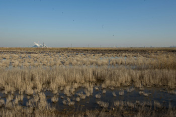 天津市北大港濕地自然保護區冬季濕地蘆葦整體情況。記者