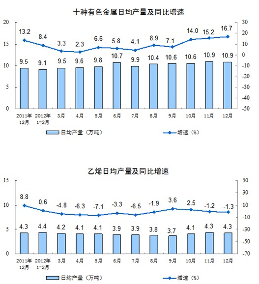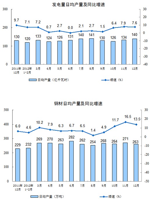 分輕重工業看,12月份,重工業增加值同比增長10.6%,輕工業增長9.6%。