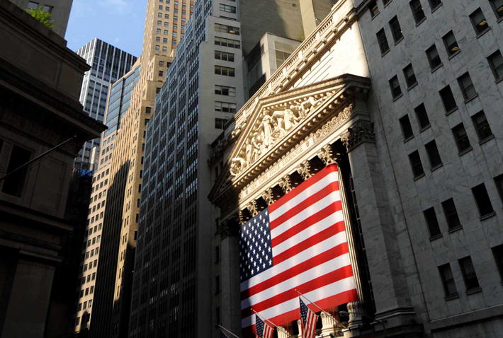 在美國紐約華爾街,華盛頓雕像的手臂指向晨光中的紐約證券交易所。記者 申宏/攝 |