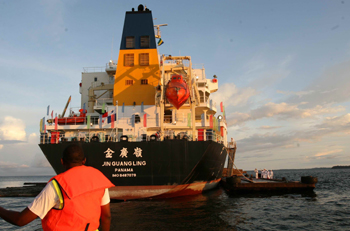中國遠洋旗下的“金廣嶺”輪。新華社發 |