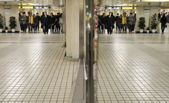 在日本東京,行人走過地下通道。新華社發(關賢一郎 攝) |