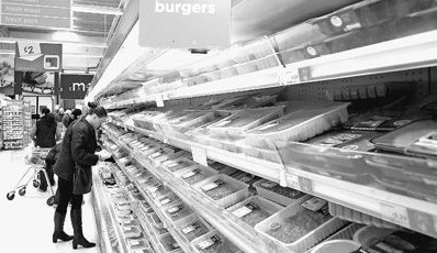 據英國《衛報》15日報道,大型超市Asda在其銷售的鮮牛肉意面醬被檢測出含有馬肉后,在全國范圍內下架該產品。這是自“馬肉丑聞”以來,首次在鮮肉制品中發現馬肉。圖為2月15日,Asda超市里的消費者在挑選制作漢堡包的肉餡。