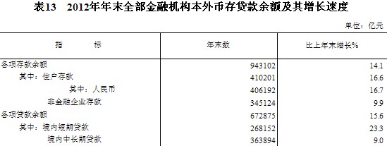 年末全部金融機構本外幣各項存款余額94.3萬億元,比年初增加11.6萬億元,其中人民幣各項存款余額91.8萬億元,增加10.8萬億元。全部金融機構本外幣各項貸款余額67.3萬億元,增加9.1萬億元,其中人民幣各項貸款余額63.0萬億元,增加8.2萬億元。全年社會融資規模[17]為15.8萬億元,按可比口徑計算,比上年多2.9萬億元。