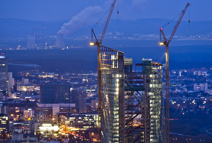 位于德國法蘭克福正在建設中的未來歐洲央行總部雙子大樓。新華社/EPA歐新 |