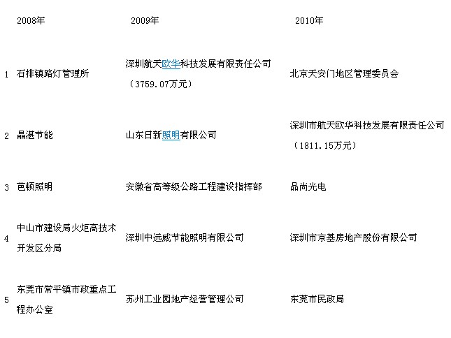 顯然,仔細梳理上述勤上光電的2008年到2011年上半年內銷大客戶不難發現一個有趣的現象,即這些客戶一般只會出現一次。比如晶湛節能和芭頓照明出現在勤上光電2008年內銷前五大客戶名單中,但隨后內銷大客戶中便沒有它們的名字。