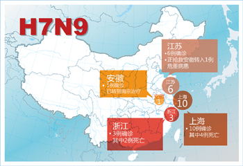 據中國疾病預防控制中心的統計,截至7日17時,全國共發現20例人感染H7N9禽流感確診病例,集中在上海、江蘇、浙江、安徽等地。其中7日上海市新確診2例人感染H7N9禽流感病例,均在救治中。至此,上海共發現10例人感染H7N9禽流感確診病例,其中死亡4例。