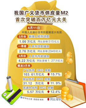 央行11日公布的數據顯示,3月末,廣義貨幣(M2)余額103.61萬億元,同比增長15.7%,這一增速遠超政府設定的13%目標。同時公布的信貸數據也遠超預期。3月份,人民幣貸款增加1.06萬億元,同比多增515億元,這引起了機構對政策面收緊的擔憂。