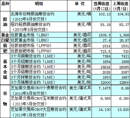 國際大宗商品期貨價格明細表[2013-04-15]
