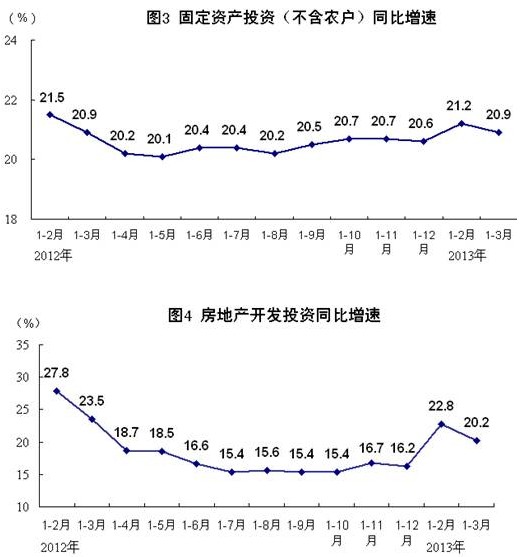 %),增速與上年同期持平,比上年全年加快0.3個百分點。其中,國有及國有控股投資18029億元,增長18.7%;民間投資36763億元,增長24.1%。分地區看,東部地區投資同比增長19.4%,中部地區增長24.1%,西部地區增長24.2%。分產業看,第一產業投資930億元,同比增長31.4%;第二產業投資24635億元,增長16.2%;第三產業投資32527億元,增長24.5%。在第二產業投資中,工業投資24254億元,同比增長17.4%;其中,采礦業投資1338億元,增長2.7%;制造業投資20473億元,增長18.7%;電力、熱力、燃氣及水的生產和供應業投資2443億元,增長15.3%。一季度,基礎設施(不包括電力、熱力、燃氣及水的生產與供應)投資8525億元,同比增長26.9%。從到位資金情況看,一季度到位資金84899億元,同比增長19.6%。其中,國家預算內資金增長21.8%,國內貸款增長11.1%,自籌資金增長17.0%,利用外資增長6.3%。一季度新開工項目計劃總投資41429億元,同比增長14.0%;新開工項目67698個,同比增加5920個。從環比看,3月份固定資產投資(不含農戶)增長1.59%。