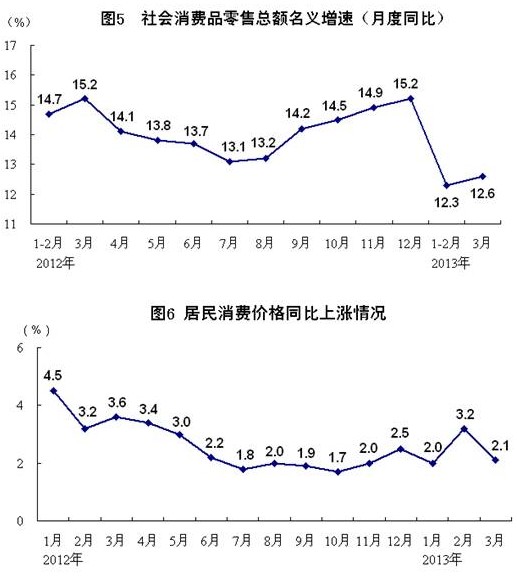 (2)根據季節調整模型自動修正結果,對2012年各季度GDP、2012年2月份至2013年2月份規模以上工業增加值、固定資產投資(不含農戶)、社會消費品零售總額環比增速進行修訂。修訂結果及2013年1季度GDP環比數據、2013年3月份其他指標環比數據如下: