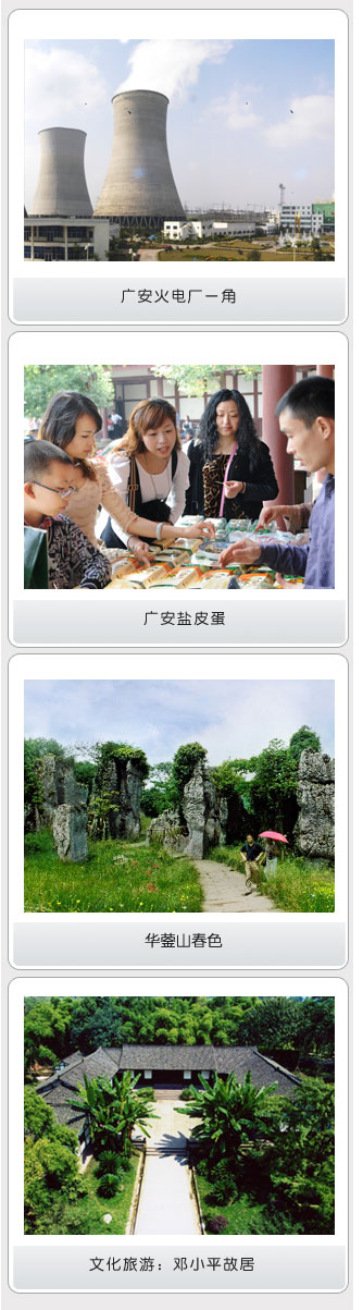 小平故里,天下廣安。川東門戶,地扼巴蜀之分野;山程水陸,輻輳四方之要津。林木蔥郁,山岳縱橫;民勤耕作,良田萬頃。八百里嘉陵,鐘靈毓秀;五千年文明,震古爍今。