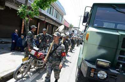 圖為解放軍成都軍區某部向雅安蘆山地震災區行軍。