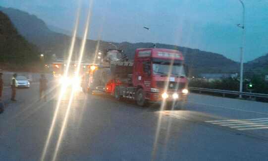 4月20日晚,裝載重型機械的救援車隊從雅西高速滎經出口往蘆山縣。