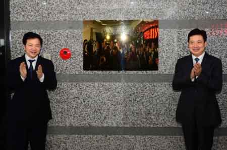 5月8日,山東省委常委、青島市委書記李群(右)和新華社黨組成員、副總編輯慎海雄共同為中國(青島)海洋經濟指數研究院揭牌。 當日,由新華通訊社、山東省政府、青島市政府三方合作成立的新華(青島)國際海洋資訊中心在青島正式啟動運營。該中心旨在通過發布海洋經濟發展系列指數等服務,打造中國海洋經濟的“風向標”。
