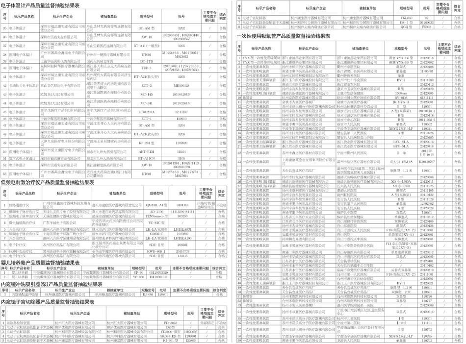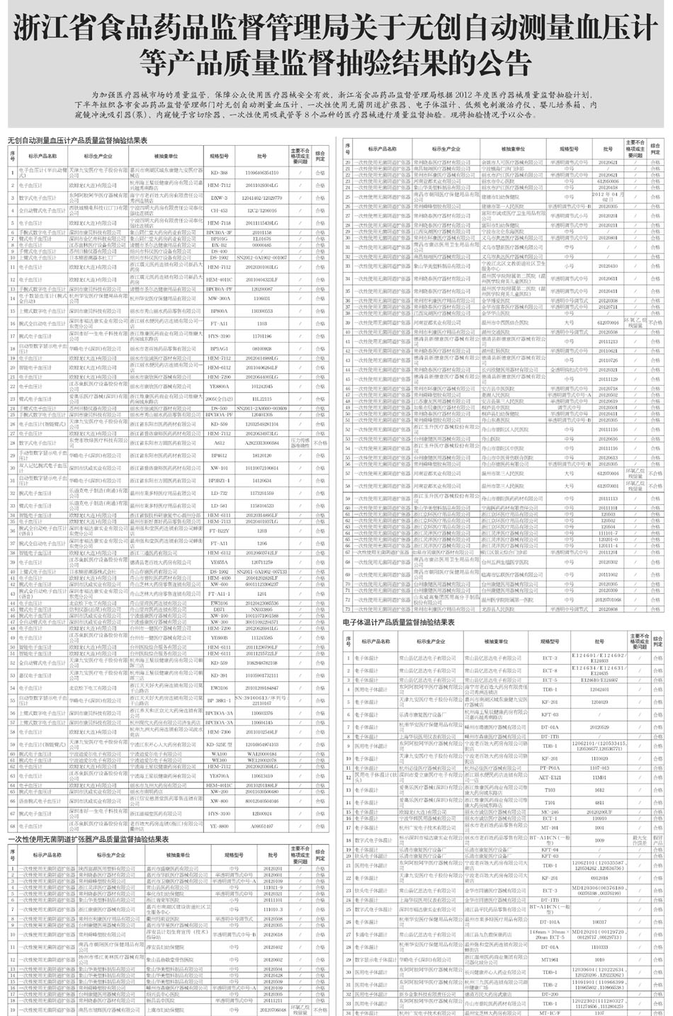 浙江省食品藥品監督管理局關于無創自動測量血壓計等產品質量監督抽驗結果的公告
