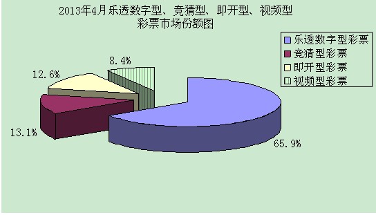 4月份,樂透數字型彩票銷售188.15億元[1],同比增加36.96億元,增長24.4%;競猜型彩票銷售37.26億元,同比增加8.5億元,增長29.6%;即開型彩票銷售36.1億元,同比減少2.73億元,下降7%;視頻型彩票[2]銷售24.1億元,同比增加7.12億元,增長41.9%。4月份樂透數字型、競猜型、即開型和視頻型彩票銷售量分別占彩票銷售總量的65.9%、13.1%、12.6%、8.4%。