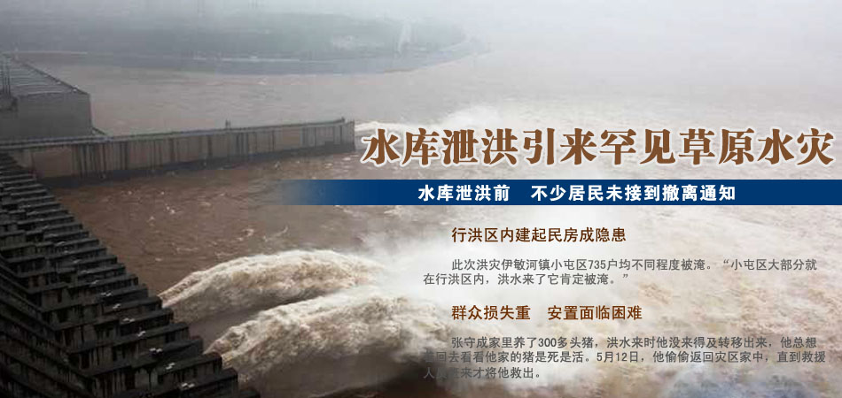 5月6日,因上游來水過大,內蒙古自治區呼倫貝爾市境內紅花爾基水庫緊急泄洪,目前造成下游鄂溫克族自治旗(以下簡稱鄂溫克旗)、海拉爾區1人失蹤,近萬人受災,牲畜死亡失蹤近5000頭只,成為當地1998年以來罕見的水災!督洕鷧⒖紙蟆酚浾哒{查了解到,除天災之外,水庫泄洪時機不當、撤離通知不到位、行洪區內私搭亂建、干部群眾思想麻痹等并不罕見的“人為因素”,也是造成這場嚴重災情的重要原因,更應引起反思。