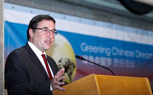 圖為聯合國環境規劃署執行主任阿希姆·施泰納致辭。