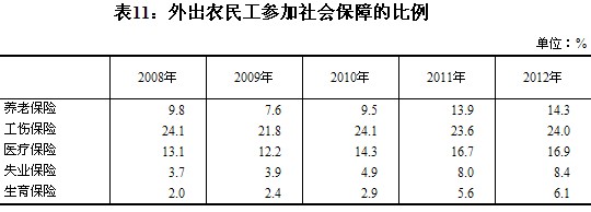 (三)外出農民工參加社會保險的水平有所提高,但總體仍然較低