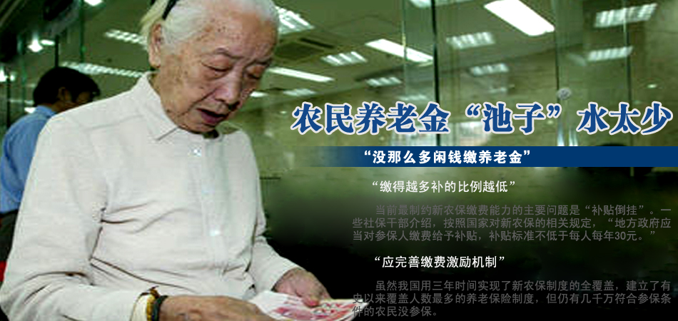 除了農民自身外,一些貧困地區的縣級財政收入少,補貼能力有限,也給農民養老金的繳納帶來一定影響。西部地區的一些縣長介紹,縣里都是吃飯財政,每年的人員工資都靠依靠國家轉移支付,平時還有很多項目需要地方配套,財政非常緊張。對農民養老金進行補貼,給一些“窮縣”的財政帶來很大壓力。