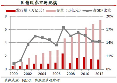 但目前的時機與18年前已大為不同。華泰證券的研究顯示,國債期貨交易的順利開展需要有一個頗具規模的國債現券市場作為支撐。以海外市場為例,在各國開展國債期貨交易之初,其國債存量規模占GDP的比重均已達到15%或以上。根據中債最新的債券托管量統計數據,截至2012年底,我國債券市場的國債托管規模已達7.42萬億元,其中記賬式國債7.07萬億元,儲蓄國債0.35萬億元。記賬式國債存量約占GDP的14%,是1992年國債存量的將近60倍,國債現券的存量規模已達到了其他國家開展國債期貨交易的市場平均水平。