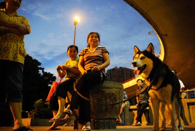 市民在成都人南立交橋下遛狗。