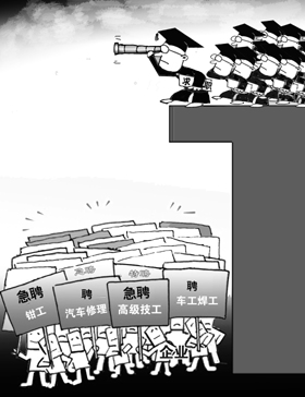 如果暫不考慮自主創業的問題,麥可思研究院的數據可以明顯反映出當前我國高校畢業生藍領化的傾向加重,這與社會的需求有關!敖衲戤厴I699萬大學生,真正短缺的是一線的體力勞動者和藍領工人,大學畢業生都想當白領,都想進機關、事業單位,實際上就業主體仍然在企業,因此必須調整招生結構、教育結構,增加藍領工人和技術工人供給解決勞動力短缺問題。大學生近年的就業率不到65%,真正的體力勞動者的失業率在4.3%以下,這并不是說讀書無用,而是我們的經濟結構和就業結構對勞動力需求需要調整!敝袊缈圃汗I經濟研究所研究員、前所長呂政對《經濟參考報》記者說。