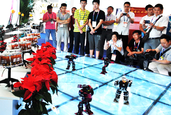 第24屆中國哈爾濱國際經濟貿易洽談會的高新技術展區,機器人舞蹈吸引了參會者的眼球。哈洽會是惟一被寫入中俄兩國元首會晤聯合公告的展會。記者王建威/攝 |