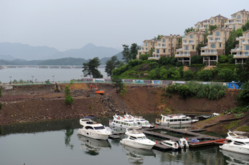 近期有網絡報道稱,在千島湖畔的淳安縣,存在一個違規建設運營的高爾夫球場,而部分臨湖開發的房地產和酒店項目建設開發過程中出現填湖圍地狀況,對千島湖水質和環境造成了影響。新華社記者為此趕赴淳安,對此進行了調查。圖為浙江省杭州市淳安縣臨近千島湖的一處房地產和酒店項目建設工地,部分臨湖項目建設開發過程中出現填湖圍地狀況,對千島湖水質和環境造成了影響。記者