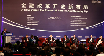 6月28日,以“金融改革開發新布局”為主題的2013陸家嘴論壇在上海開幕。監管機構的高層領導、企業領袖以及知名專家學者齊聚一堂,圍繞中國金融改革如何進行轉型升級,人民幣國際化的機遇和挑戰等熱點話題展開深入探討。新華社記者