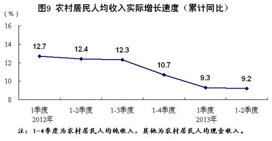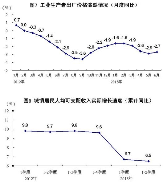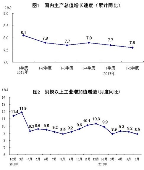 2012年各季度及2013年一、二季度GDP環比增速分別為1.5%、2.1%、2.0%、1.9%、1.6%和1.7%。
